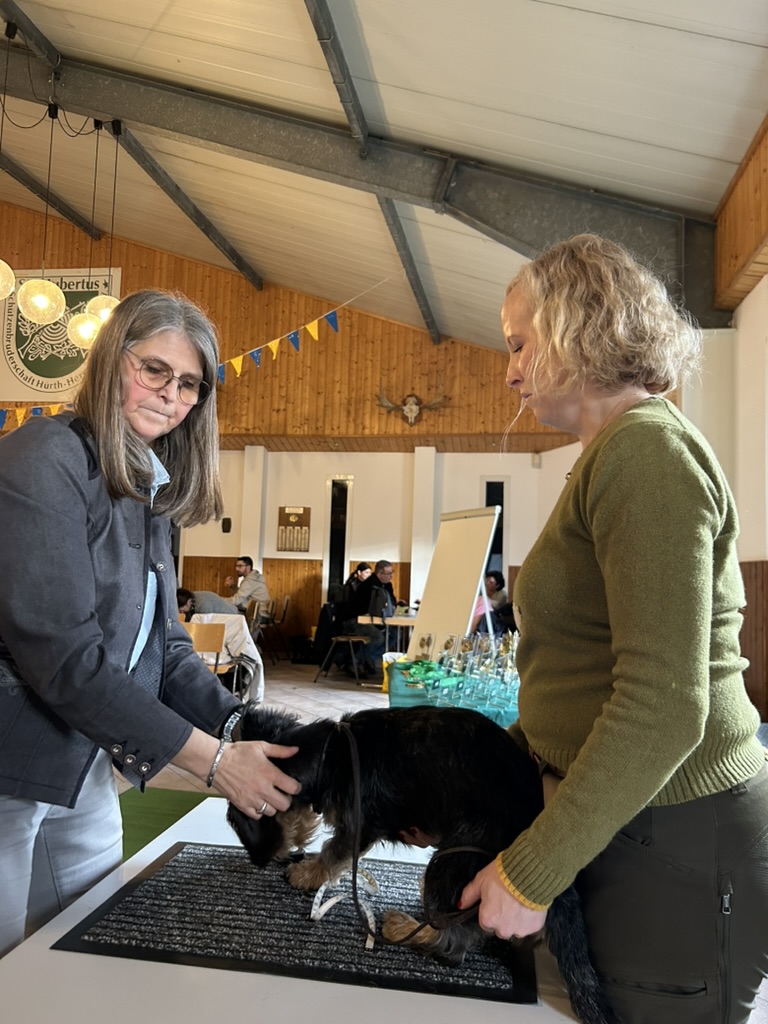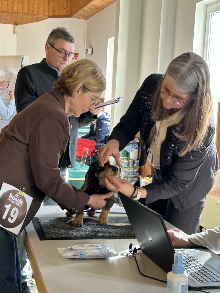 Hatten wir bis dato „nur“ die Veterinäramthürde zu meistern, so bekamen wir eine Woche vor dem Ausstellungswochenende die Meldung, dass der eingeladenen Richter, Herr Jürgen Kunzelmann, krankheitsbedingt leider absagen musste. So galt es, kurzfristig einen Ersatz zu finden: Melanie Hüttenmeisters Telefondraht glühte. Letztendlich fand sie in Frau Christiane Lohmann einen sehr würdigen und kompetenten Ersatz.