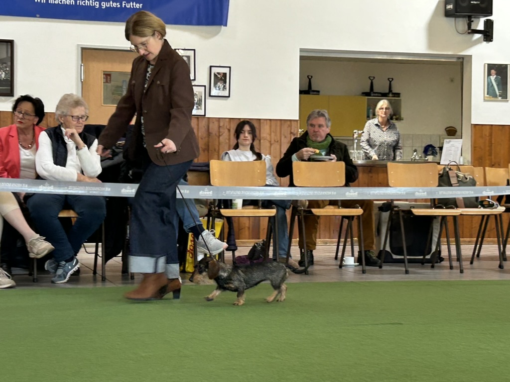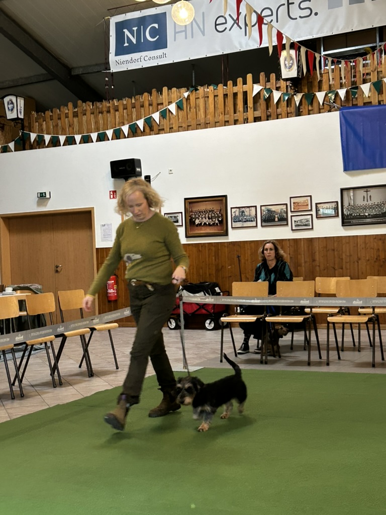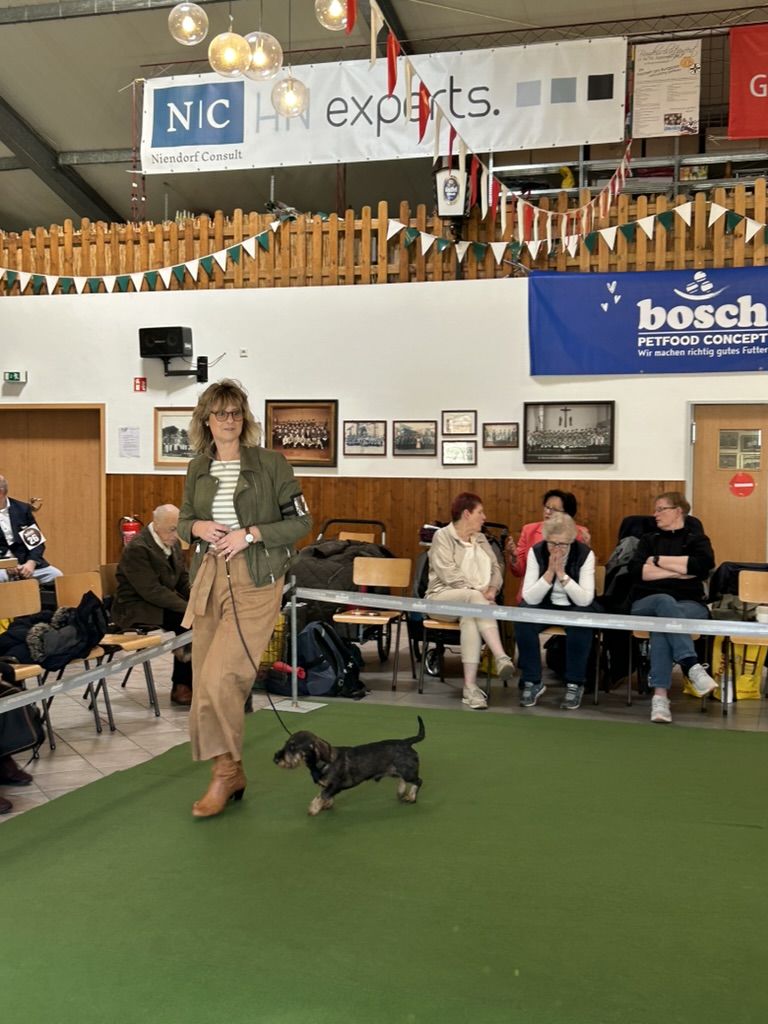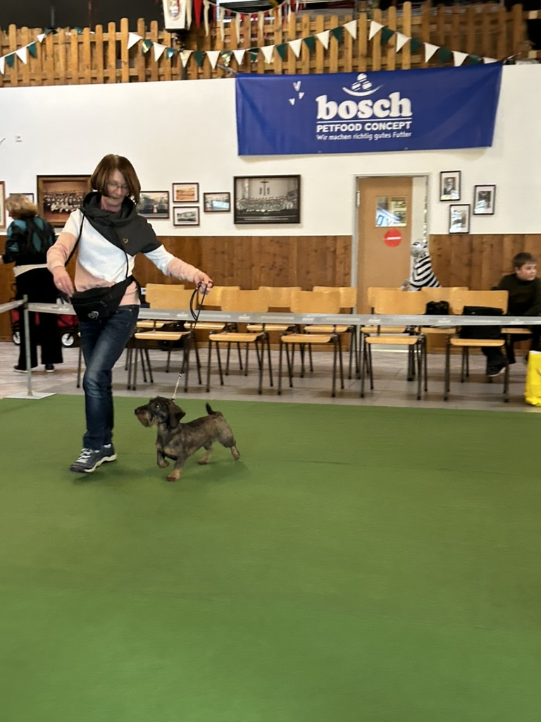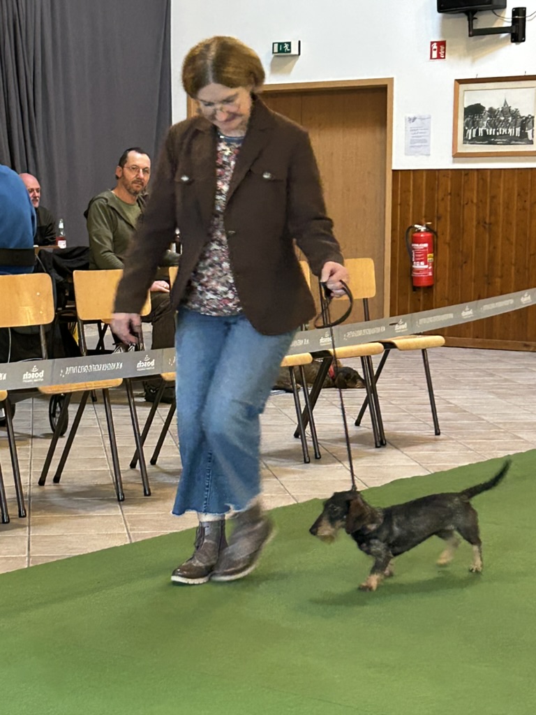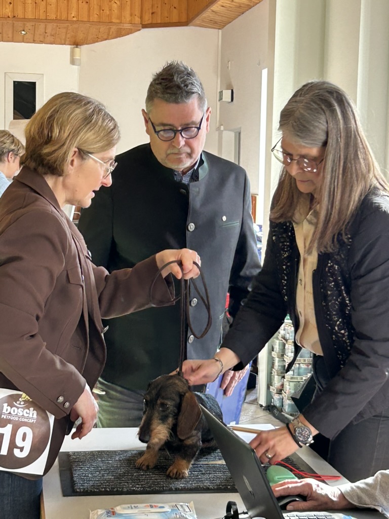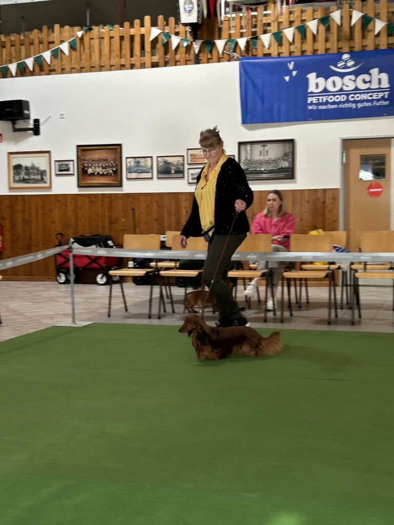 Am Sonntag ging es bei der Spezial-Ausstellung dann um Anwartschaften, Pokale und Medaillen. Wieder führte Anja Pusch souverän Regie im Ring. 47 gemeldete Hunde wurden nach Haarart, Größe und Klasse bewertet – von Kurzhaar über Rauhaar bis Langhaar. Nach der Pflicht folgte die Kür: