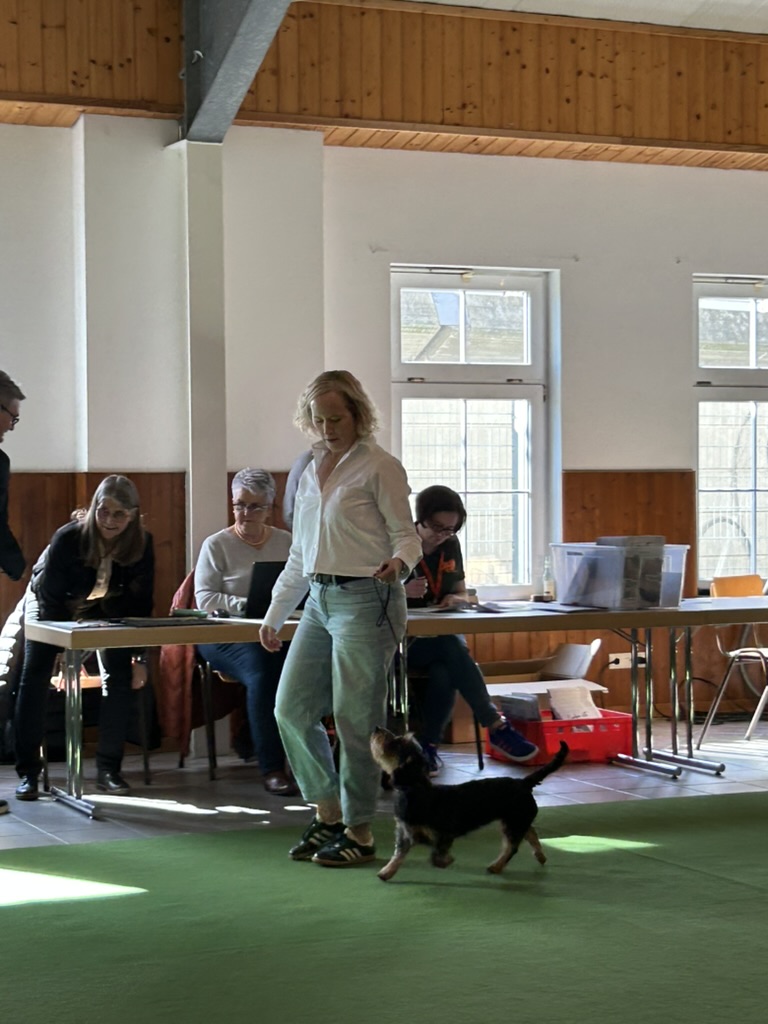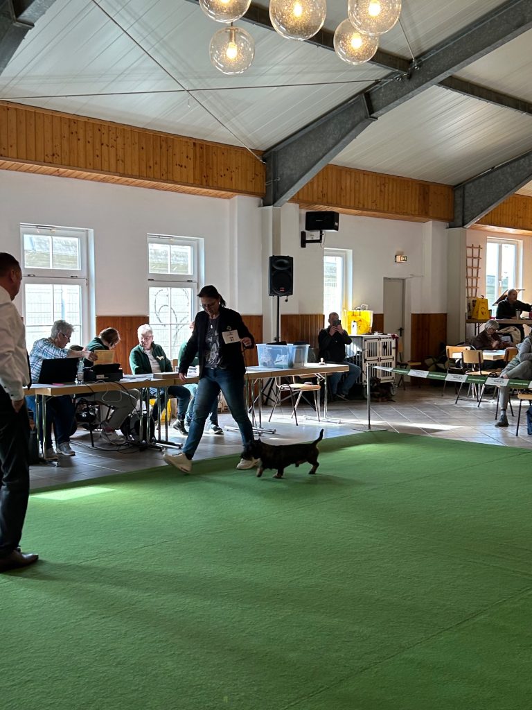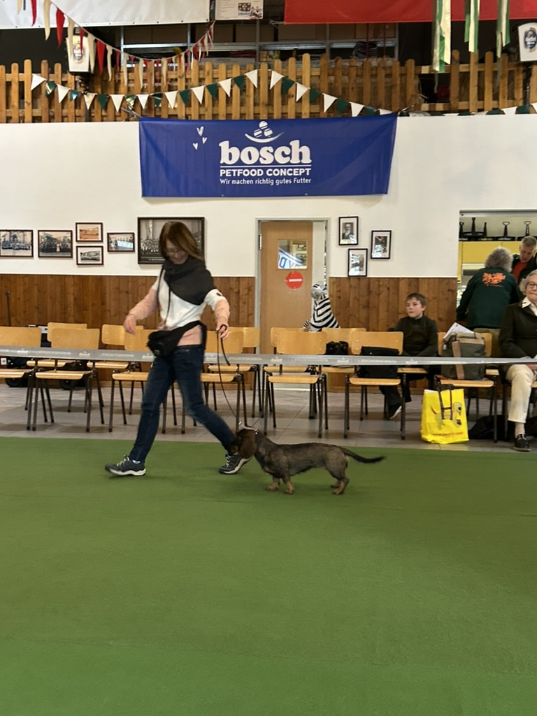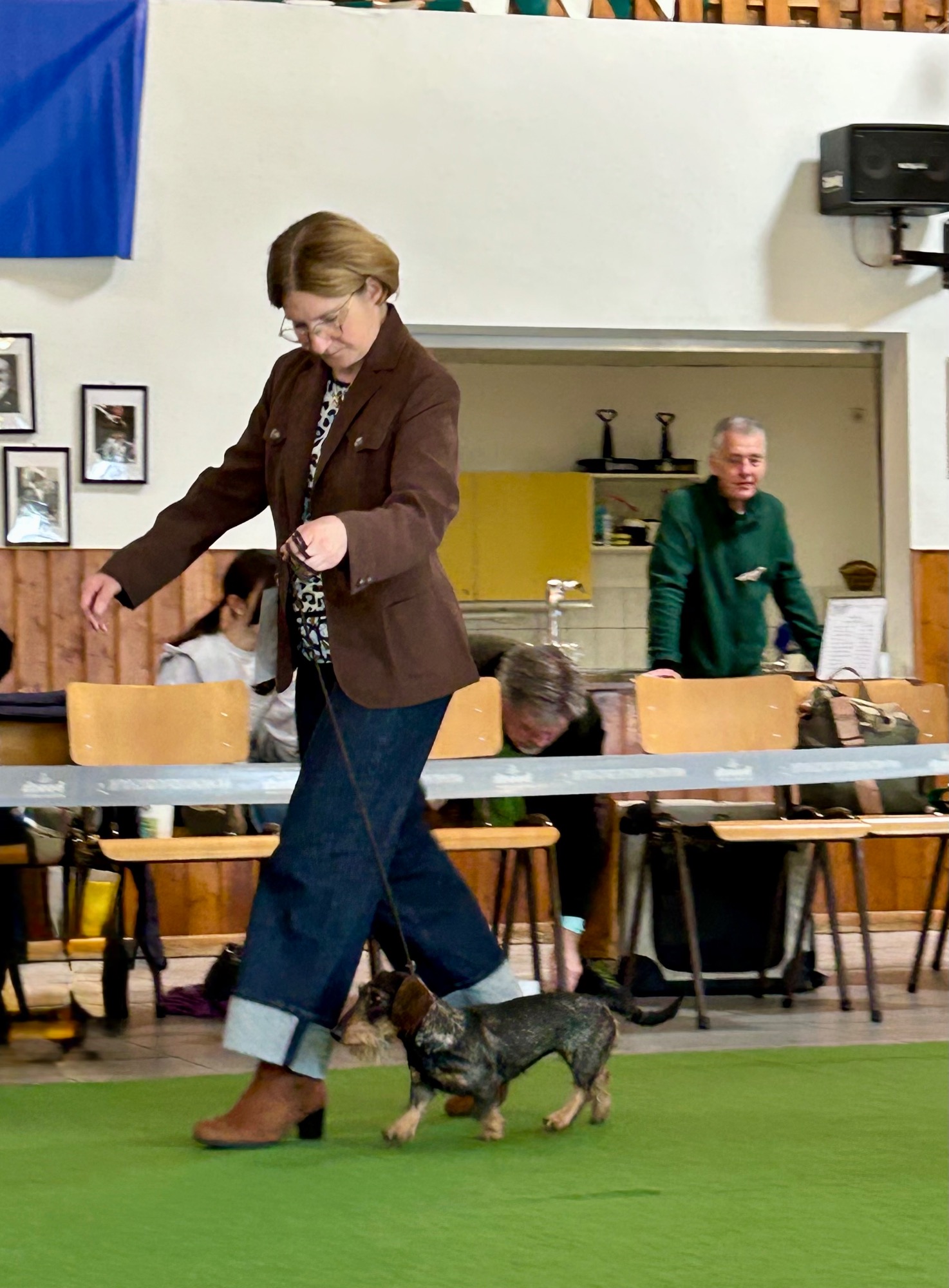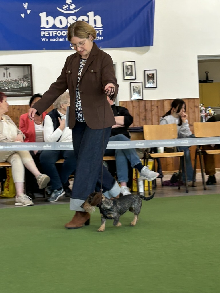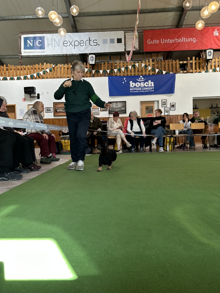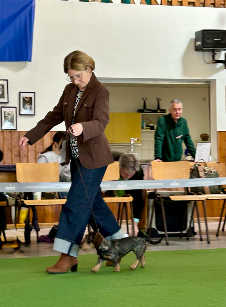Am Sonntag ging es bei der Spezial-Ausstellung dann um Anwartschaften, Pokale und Medaillen. Wieder führte Anja Pusch souverän Regie im Ring. 47 gemeldete Hunde wurden nach Haarart, Größe und Klasse bewertet – von Kurzhaar über Rauhaar bis Langhaar. Nach der Pflicht folgte die Kür: