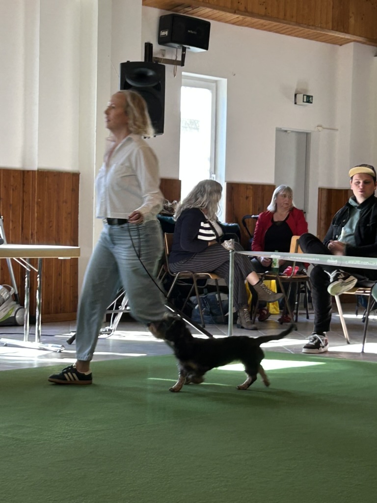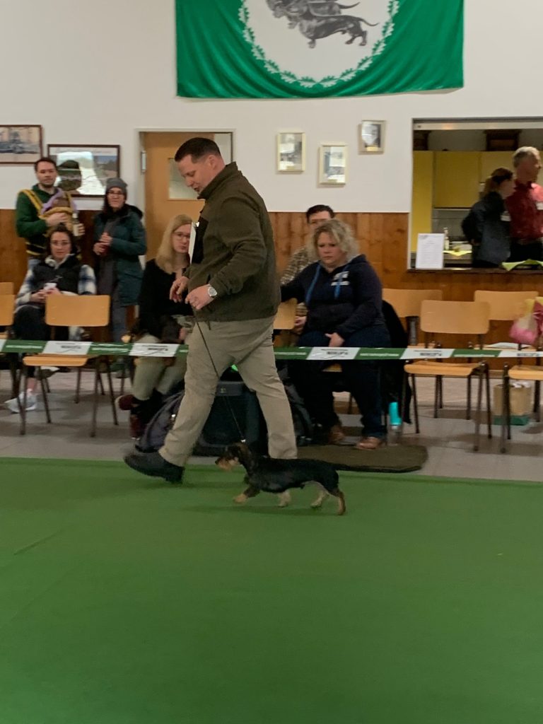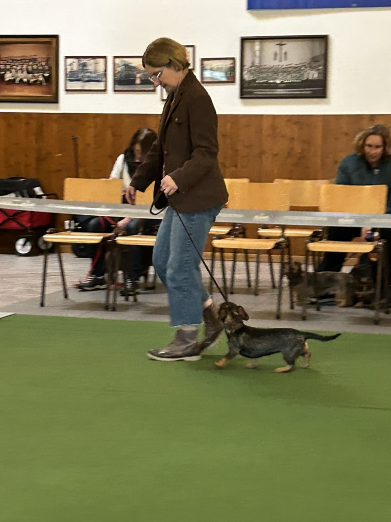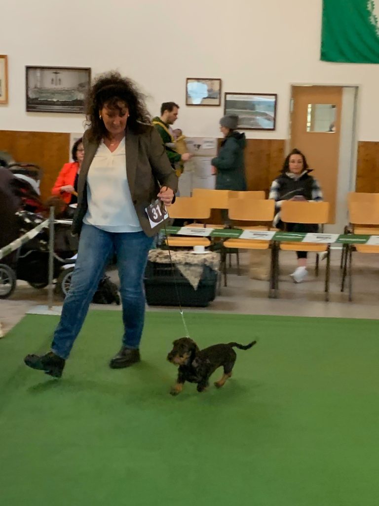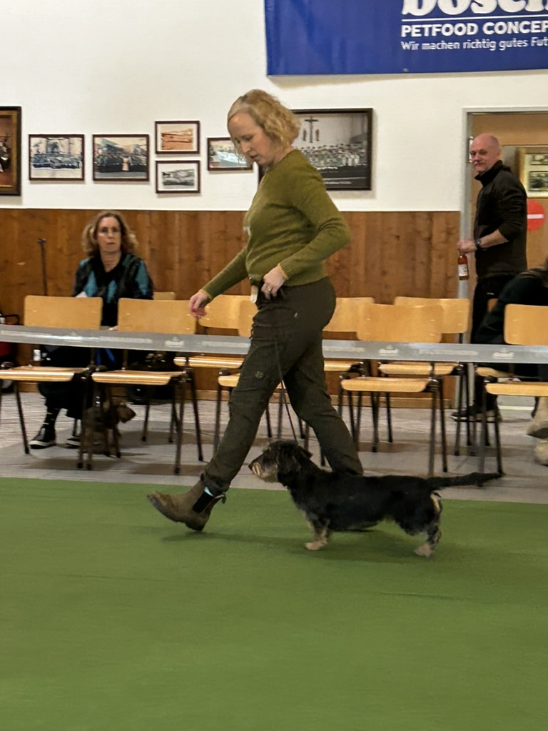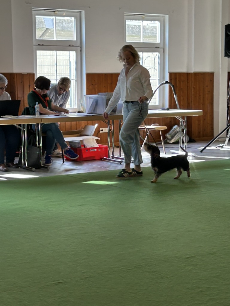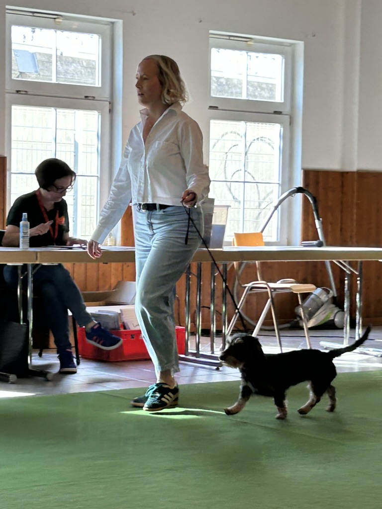 Am Sonntag ging es bei der Spezial-Ausstellung dann um Anwartschaften, Pokale und Medaillen. Wieder führte Anja Pusch souverän Regie im Ring. 47 gemeldete Hunde wurden nach Haarart, Größe und Klasse bewertet – von Kurzhaar über Rauhaar bis Langhaar. Nach der Pflicht folgte die Kür: