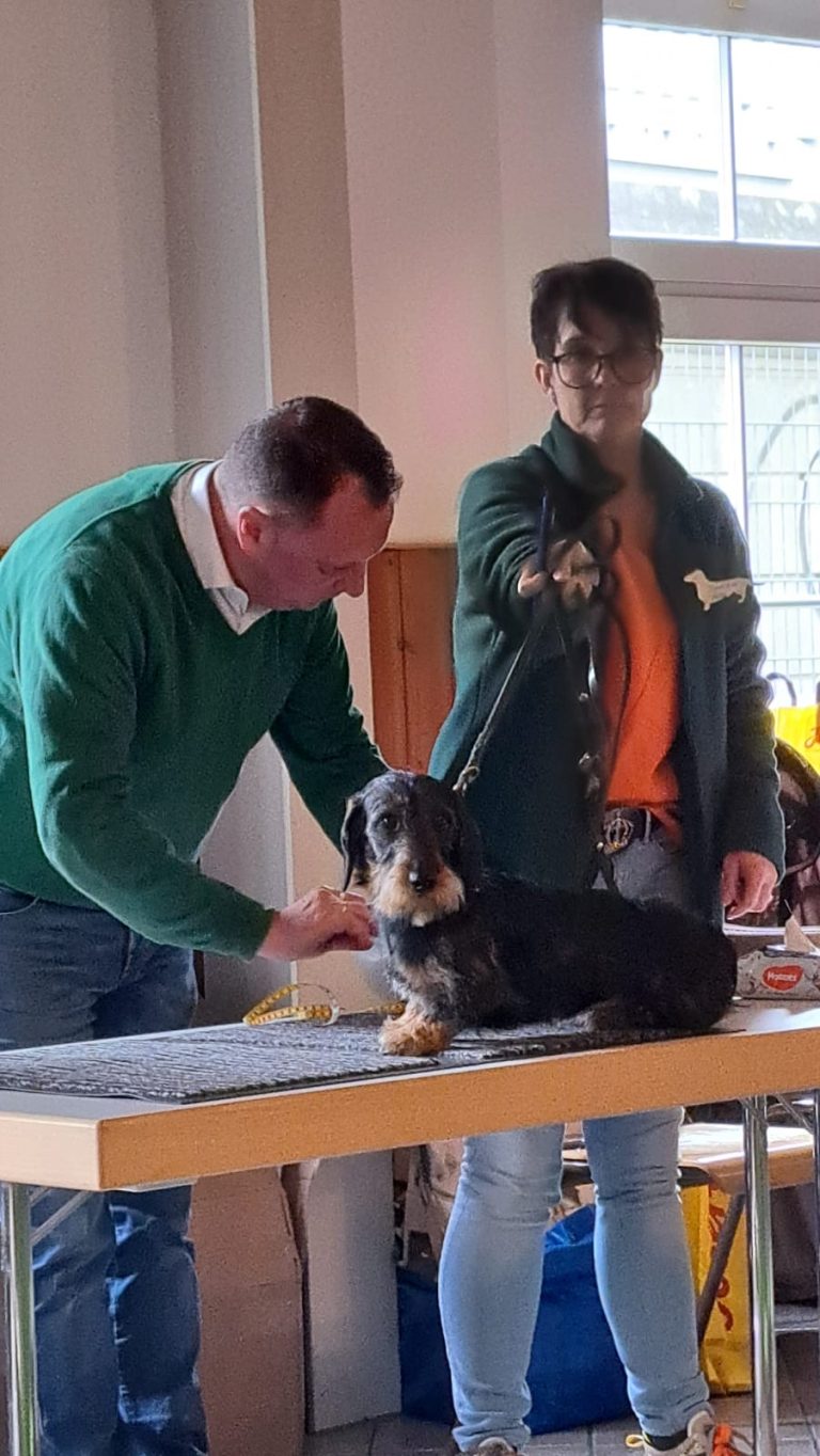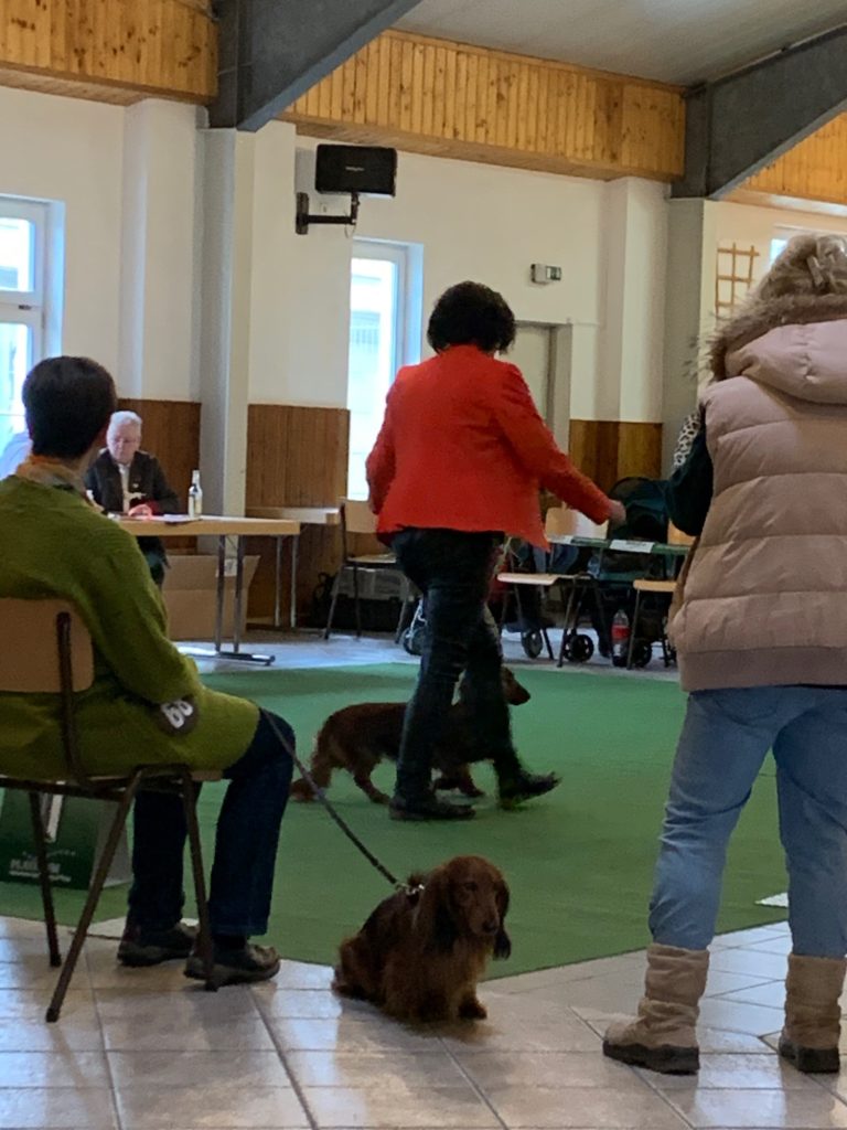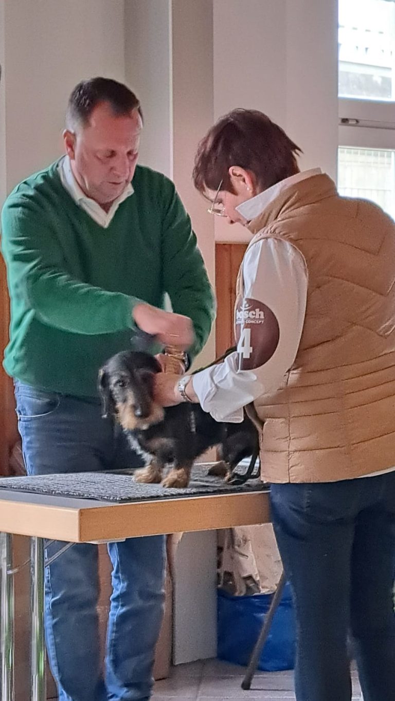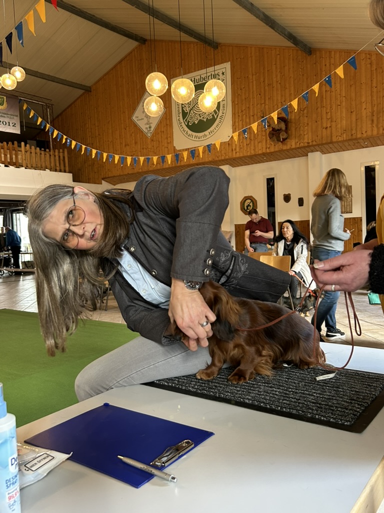 Durch den großen Ansturm am Samstag "aufgewärmt" und "trainiert" waren die 64 zu bewertenden Teckel am Sonntag, 3. März 2024, bei der Spezial-Ausstellung, ein Klacks... ;o))