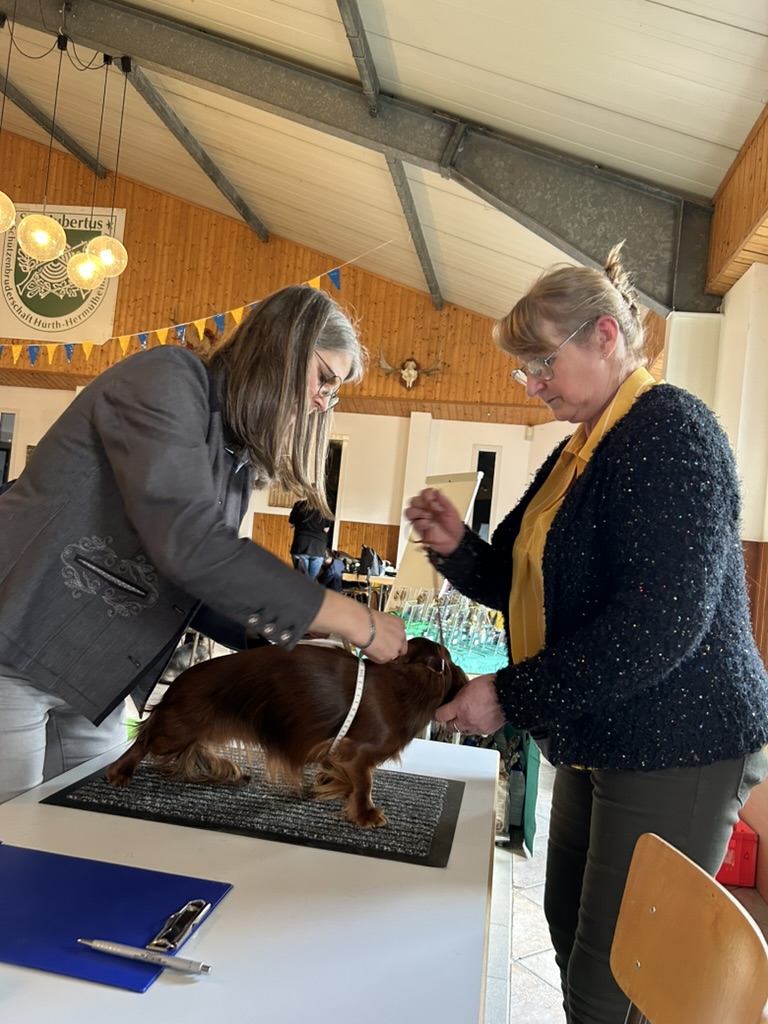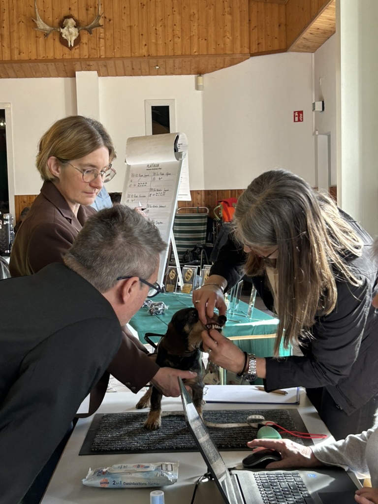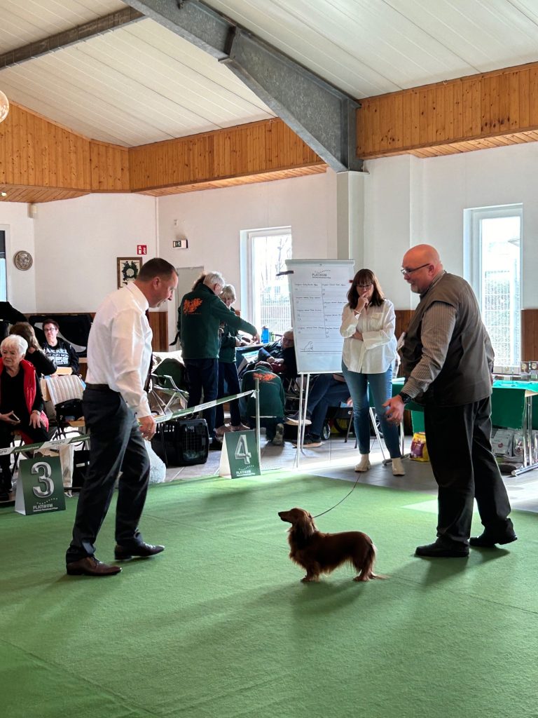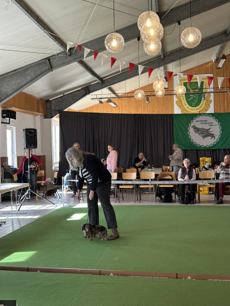 Durch den großen Ansturm am Samstag "aufgewärmt" und "trainiert" waren die 64 zu bewertenden Teckel am Sonntag, 3. März 2024, bei der Spezial-Ausstellung, ein Klacks... ;o))