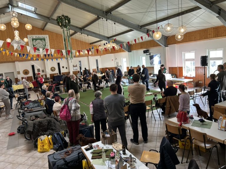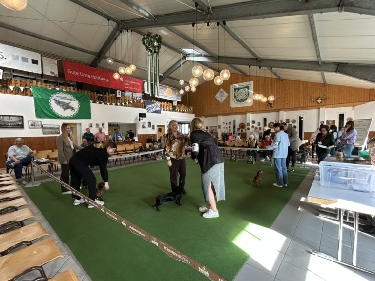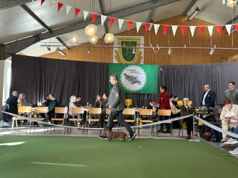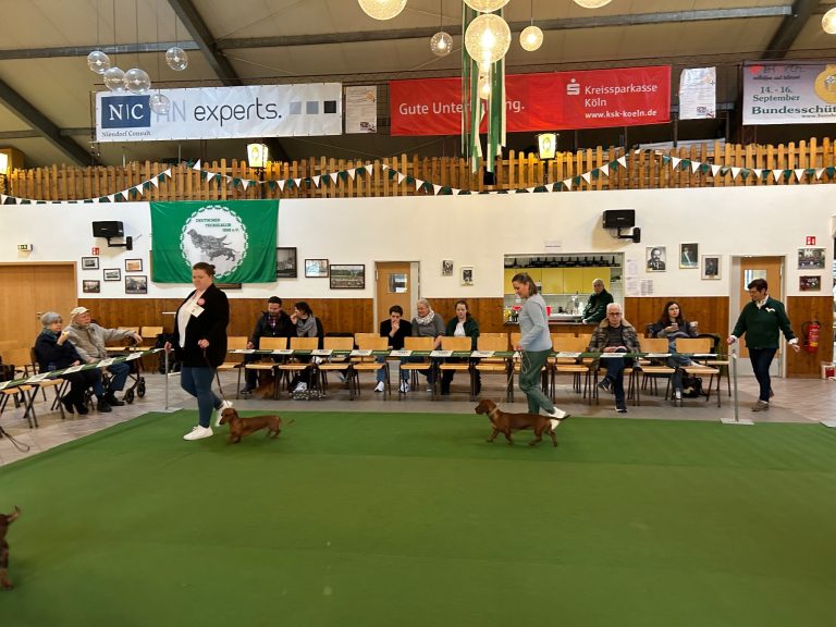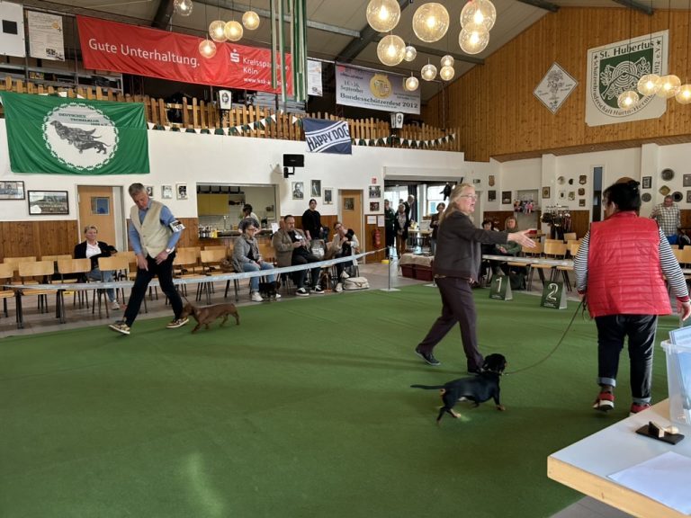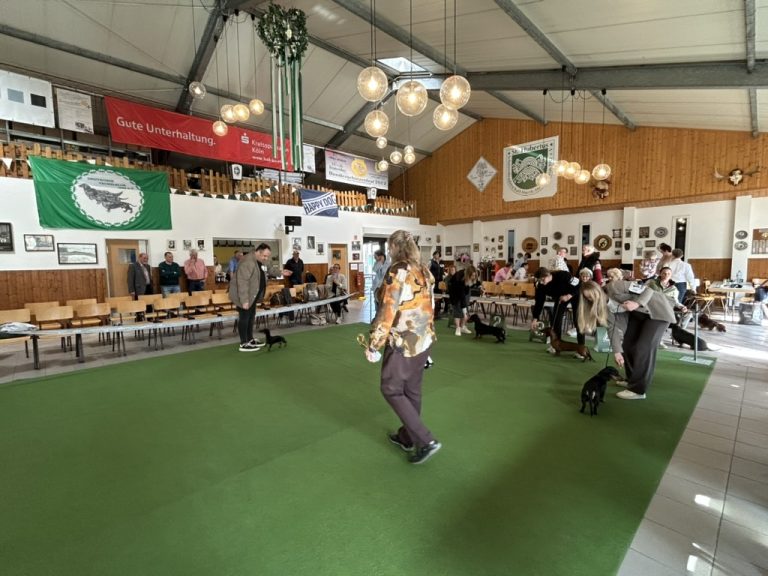 Bei strahlendem Frühlingswetter durften wir in diesem Jahr knapp 80 Dackel mit ihrem gut geschulten „Personal“ zu unserem großen Ausstellungswochenende 2026 mit Zuchtschau und Spezial-Ausstellung in der Schützenhalle der Schützenbruderschaft St. Hubertus in Hürth-Hermülheim begrüßen – ein herrlicher Anblick auf vier (und zwei) Beinen.