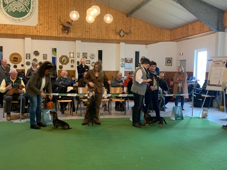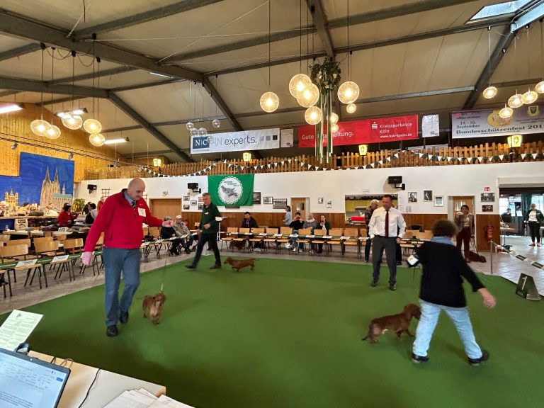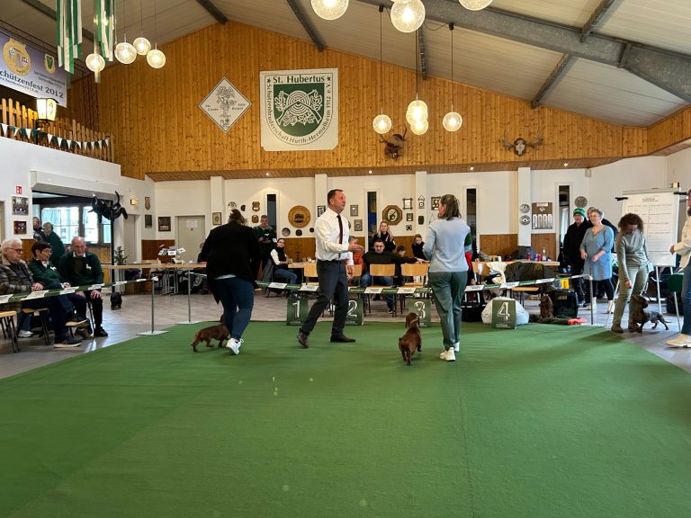 Zwei ereignisreiche Tage neigten sich dem Ende zu – 103 Teckel präsentierten sich am 4. und 5. März 2023 in der Schützenhalle der St. Hubertus Schützenbruderschaft in Hürth-Hermühlheim.
