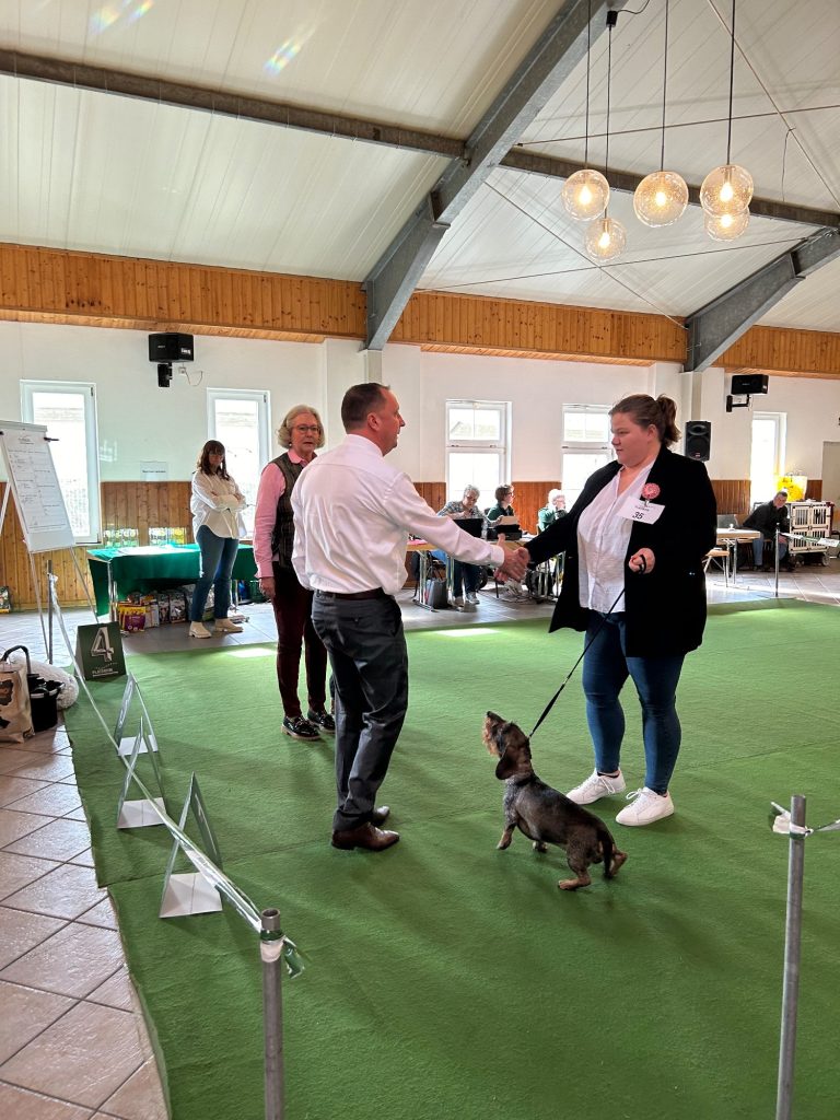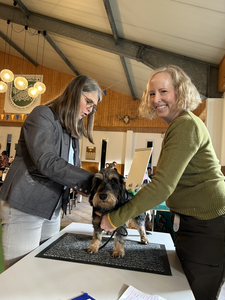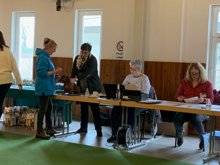 Unser 1. Vorsitzender, Horst Schramm, eröffnete das Ausstellungswochenende mit einer kleinen, launigen Rede und dann ging es auch schon los. Unter den aufmerksamen Augen von Richterin, Christiane Lohmann, wurden 33 Teckel auf ihre Zuchttauglichkeit geprüft und bewertet.