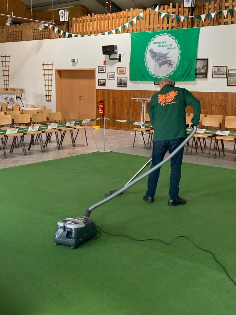 Doch von Anfang an: Unter der Leitung von Melanie Hüttenmeister organisierte die DTK Gruppe Brühl e.V. – wie jedes Jahr – eine Zuchtschau und eine Spezialausstellung für den Landesverband Rheinland. Tatkräftig unterstützt wurde sie von zahlreichen Mitgliedern der Gruppe. Was so locker flockig nach außen aussieht, ist hinter den Kulissen mit viel Arbeit und Engagement verbunden: die Unterlagen müssen ausgedruckt, Give-away-Tüten gepackt, die Halle hergerichtet, Einkäufe erledigt, Kuchen gebacken, Salate hergestellt, Brötchen geschmiert und Würstchen warmgemacht werden etc., etc., etc....