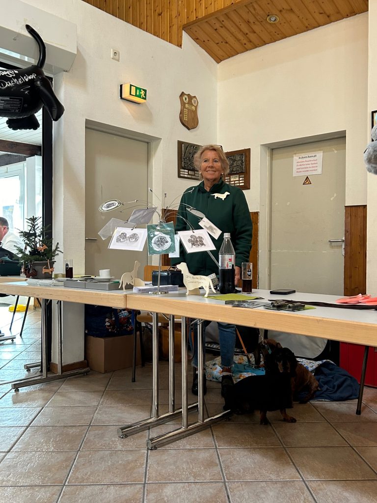 Am Sonntag ging es bei strahlendem Wetter und frühlingshaften Temperaturen munter weiter. Ab 8.30 Uhr strömten die Aussteller mit ihren vierbeinigen Stars in die Halle. Bei einem Morgenkäffchen und lecker belegtem Brötchen oder einem Stück Kuchen startete es sich gleich viel besser in den Ausstellungstag. Für das leibliche Wohl unserer Gäste sorgten wie immer unsere Gruppenmitglieder mit allerlei selbstgemachten Leckereien. Das Warten auf den Start verkürzte sich so mancher bei einem kleinen Blick in „Daggis Dackelshop“, wo es u.a. ein kurzweiliges Buch über einen dackeligen " Herrn Generaldirektor", Accessoires für Mensch und Hund wie u.a. farbenfrohe Leinen und Halsungen der Sattlerei Spork aus Köln Ostheim zu erwerben gab.