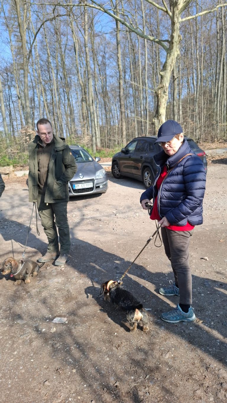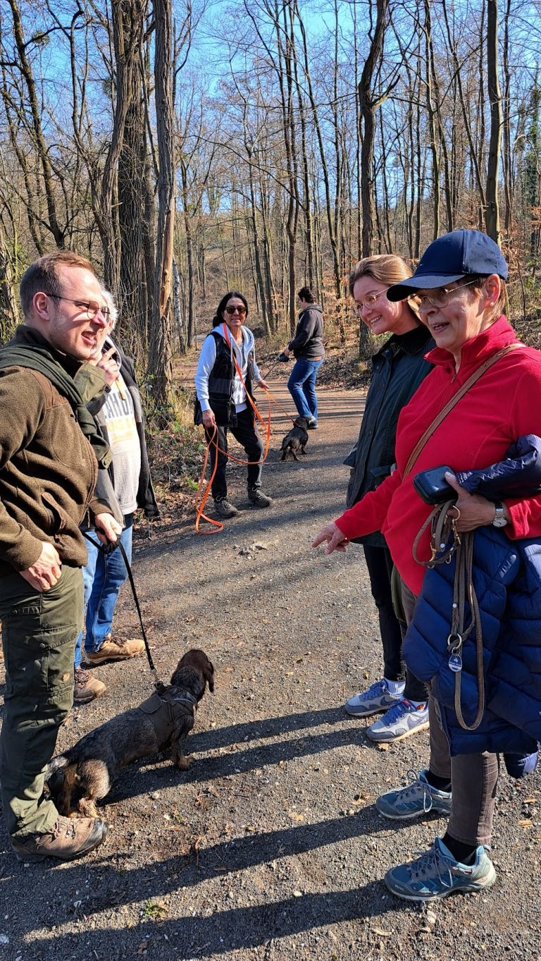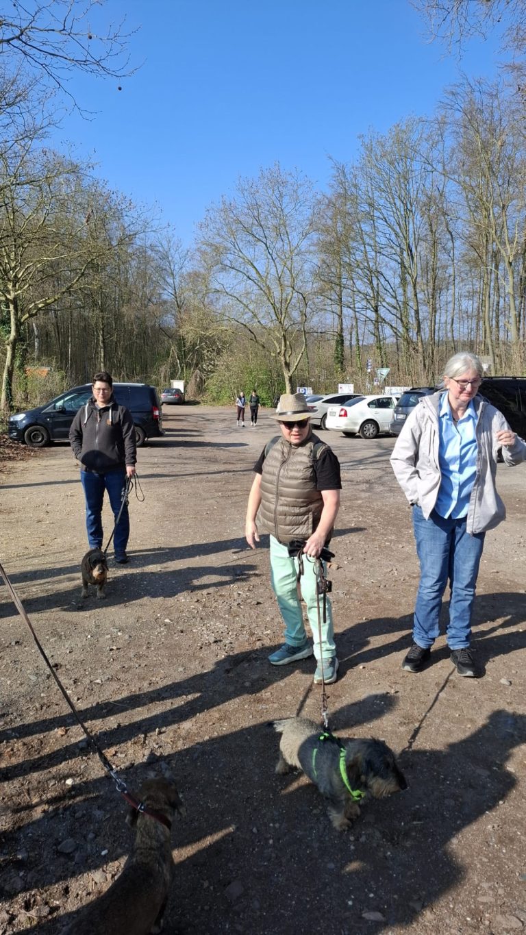 Unter der kundigen Führung von "Max" und Ulrich Conzen sowie bei strahlendem Sonnenschein starteten die zwei- und vierbeinigen Teilnehmer des ersten Dackelspaziergangs des Jahres 2024 zu einer knapp zweistündigen Tour durch das Naherholungsgebiet "Ville" in der Nähe unseres Trainingsgeländes in Hürth-Fischenich.