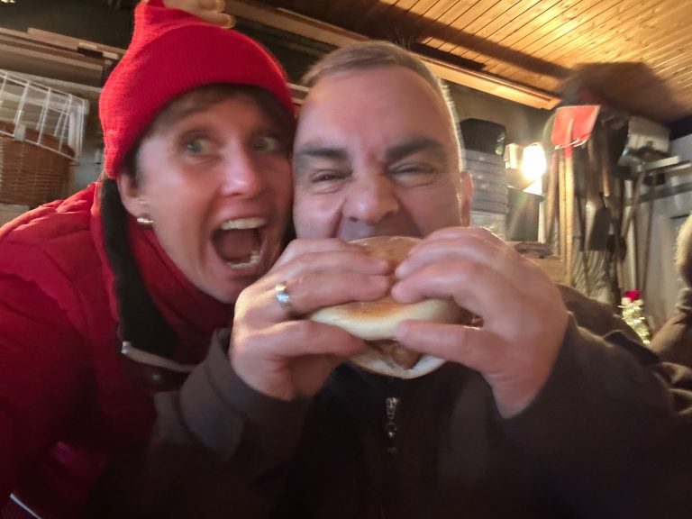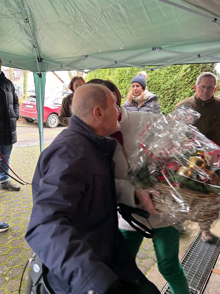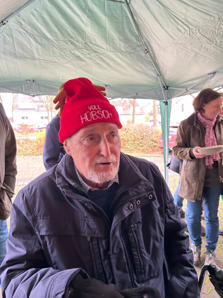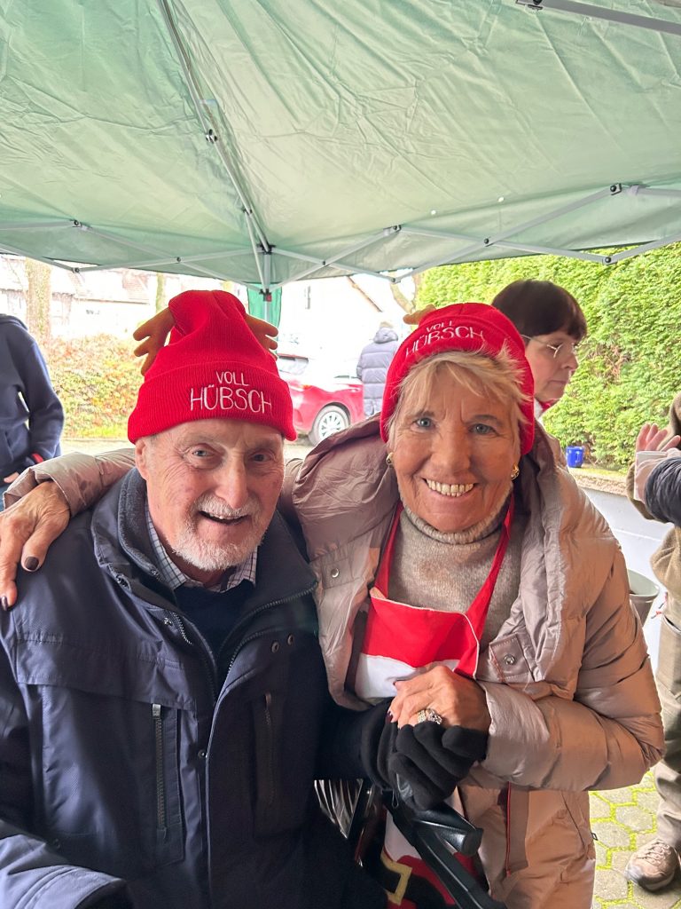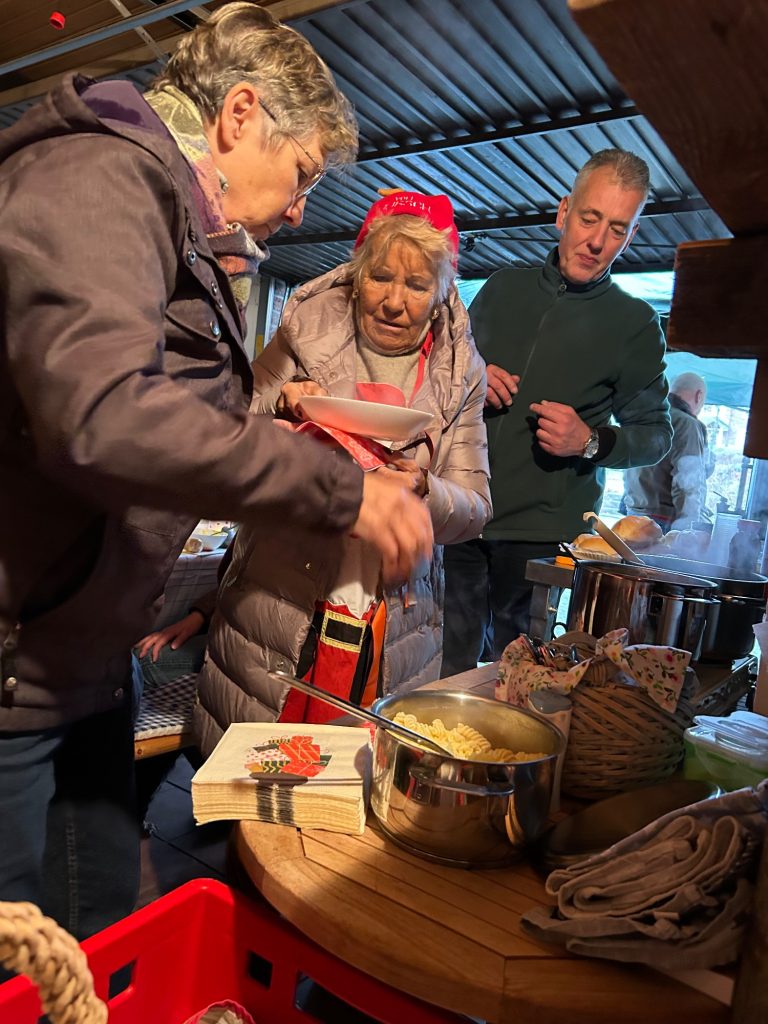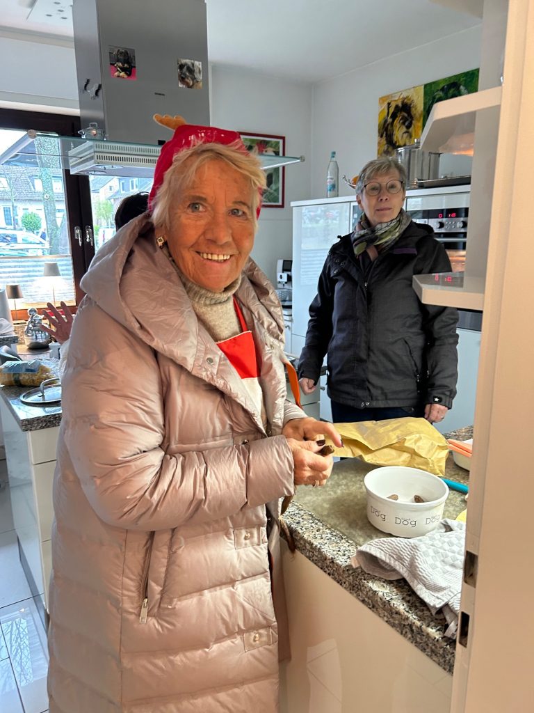 Es gab Glühwein (extra aus Baden-Württemberg eingeflogen), hausgemachte Kartoffelsuppe, verfeinert mit kleingehacktem Schinken, Petersilie, geröstetem Weissbrot. Heiße Würstchen mit Brötchen und für jeden 4-Beiner eine Tüte mit Leckerlis und Hundeplätzchen.